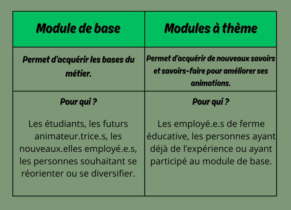 Ces modules ne sont ouverts aux personnes ayant suivi le module de base ou travaillant déjà en ferme éducative.
